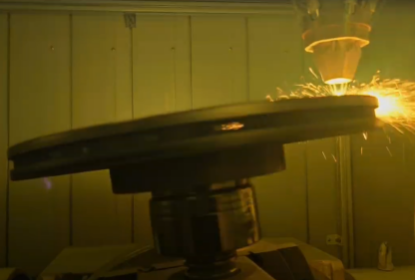 图4 刹车盘耐磨涂层高速激光熔覆过程 图5 熔覆前的刹车盘 图6 熔覆后的刹车盘